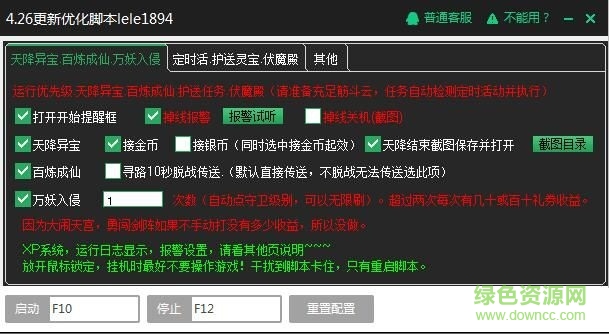 自动主线,日常,护送,天劫,异宝。