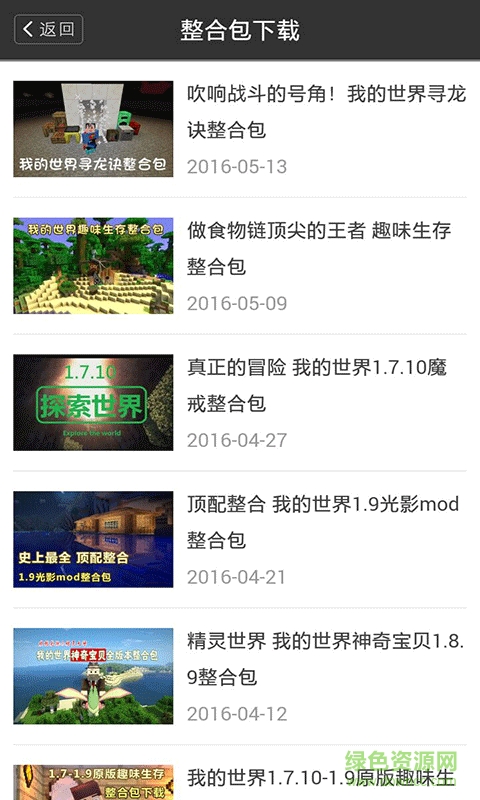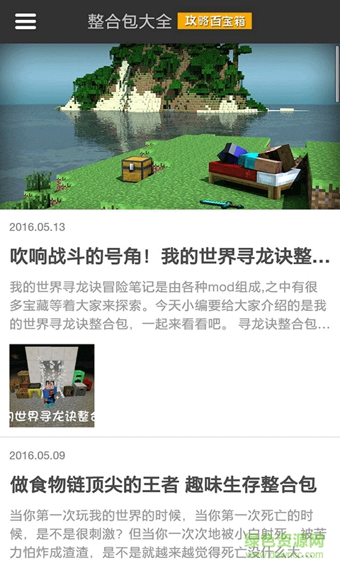 我的世界整合包手机版是一款为我的世界游戏玩家准备的游戏助手,平台整合了我的世界各种游戏资源和本更新,让玩家不用再到处找资源,且还可以时时领取免费游戏礼包。在论坛中交流游戏心得等等。欢迎来绿色资源网下载。