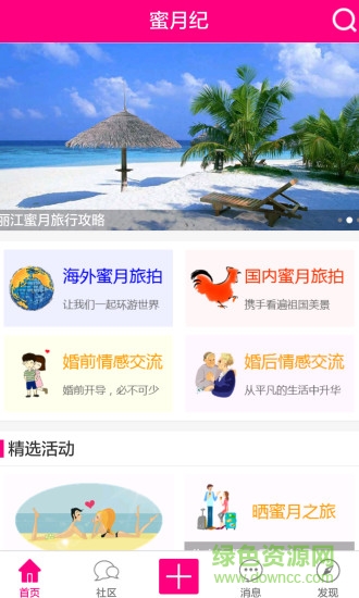 3.蜜月纪专注于打造蜜月游、旅拍的专业移动社区,为国内所有的情侣和夫妻提供探讨沟通的空间。