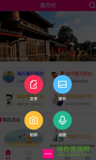 蜜月纪app是专为新婚夫妇及情侣打造的蜜月旅行服务应用。本软件为您推荐了全球多条蜜月旅行路线,并且提供旅行摄影服务,带给用户贴心、满意的旅游体验!欢迎来绿色资源网下载。