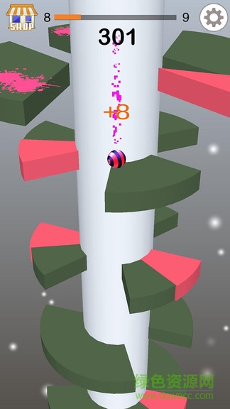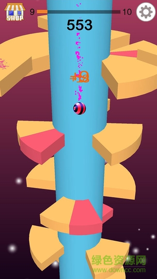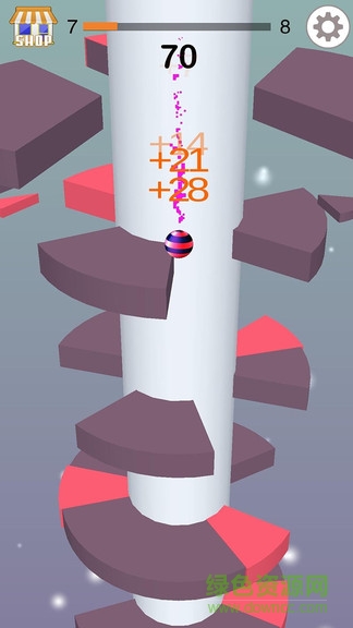 通过在屏幕上水平滑动手指来旋转螺旋迷宫,以引导跳球穿过螺旋塔中的间隙。