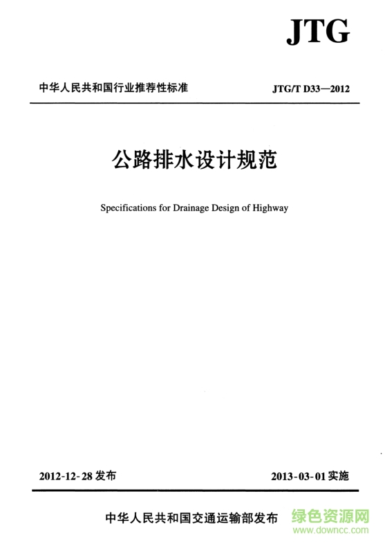 公路排水设计规范JTG/T D33-2012是一本最新的建筑设计规范资料,内容介绍的是各等级公路设计资料,发布时间为2012-12-28发布,从2013-03-1日开始施行,需要的就来下载吧。