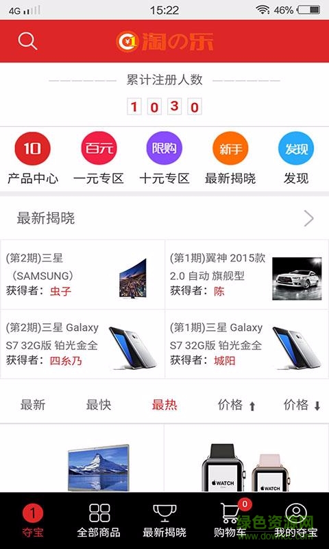 一元淘之乐app是一款非常实用的一元夺宝购物手机软件,这里汇集了汽车、宝马摩托、手机平板、家用电器、黄金、电脑数码、奢侈品、腕表等商品,用户只需要支付一元即可参与夺宝,并且有机会获得心仪的商品,喜爱的朋友赶快到绿色资源网下载体验吧!
