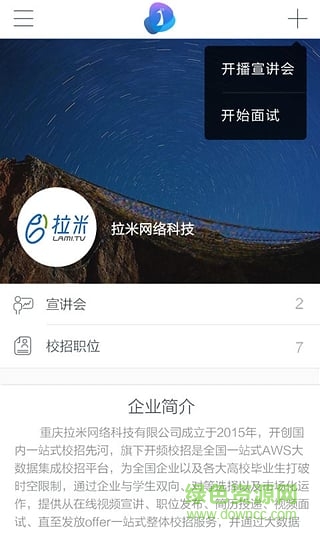 学生端APP内置宣讲会直播、视频面试功能;企业端APP内置直播宣讲会、发起视频面试等功能。
