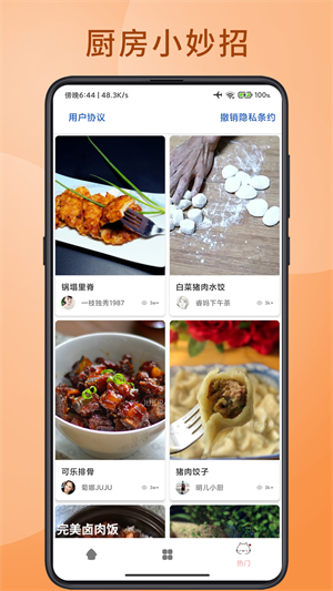 2、热门菜谱:看看大家都在吃什么,热门美食随时吃上;