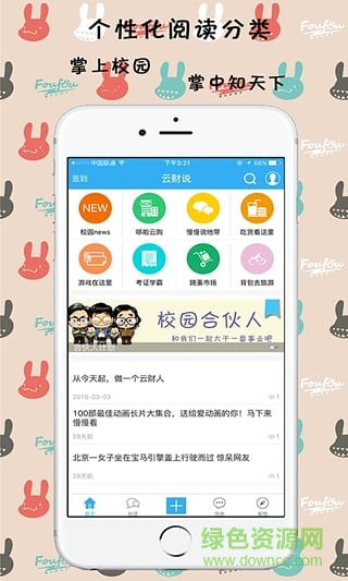 云财经说app,专为云南财经大学学生推出的一款校园综合服务平台。用户可以在这里随时了解各种周边玩乐信息,随时查询,出行更方便。更有超多兼职信息帮你赚钱收益,需要的用户就快来绿色资源网下载吧!