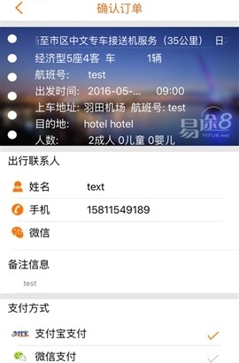 易途8成立于2015年,位于杭州市滨江区.易途8全球用车服务主要包括:包车旅行、机场接送、酒店预订等专业服务.顾客可以通过网站、App、微信公众号和第三方平台订购服务产品.顾客通过网站、手机App、微信公众平台在线预订成功后,中文车导与顾客直接联系,并如期提供服务.通过司机兼导游的方式,解决顾客在境外旅游交通问题的同时又能为顾客解决语言问题覆盖五十多个国家以及海外超过五百个主要城市.帮旅行者提供性价比高质量的一种全新的旅行方式.在任何服务站点都可以享受到优质的服务.