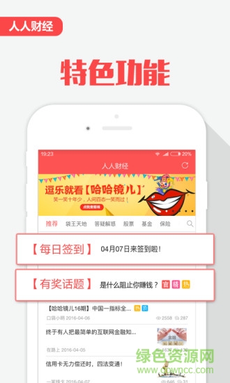 人人财经app是一款为用户打造的理财咨询平台,人人财经,你关心的资讯全在这里,这里网罗了一切“与你有关”的金融消息,这里汇集好玩的新闻和有趣的网友!是您最专业的财富管家,喜欢就来绿色资源网下载体验吧!