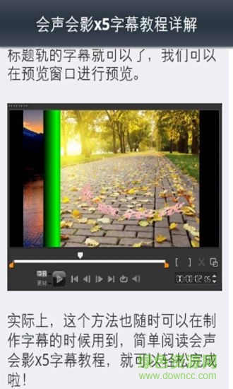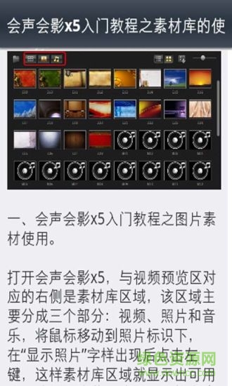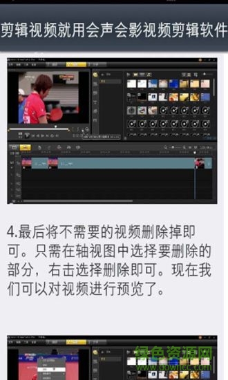 会声会影教程手机版是一款为用户打造的新手入门教程,网络盛行的年代,随便打开一个视频网站,就能看到不少自制的视频影片。将拍摄好的照片加上转场,音乐和字幕,就能制作出一段精美的视频影片了。喜欢就来绿色资源网下载体验吧!