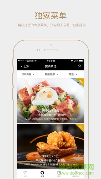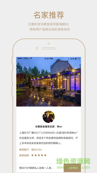 约了么app,专为请客而生的一款美式订餐服务平台。为你精选最有格调的餐厅,线上一键搜寻,各种风格特色菜等你来尝。专业团队真实体验,只为给你最好的美食体验,请客更有面子,需要的用户就快来绿色资源网下载吧!