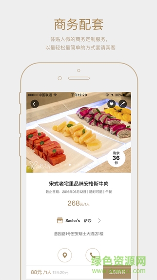 通过约了么,你可以随时掌握城中高品味餐厅的最新动向,无论是无敌江景,历史外滩,上海滩之巅,奢华酒店还是深藏在美术馆、音乐厅、博物馆、画廊、石库门及老弄堂的特色菜、私房菜统统都有不同档位的最新限量套餐。 约了么团队还为您提供商务配套订制服务,让用户既轻松又体面地享受最优质的宴请体验。