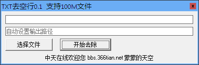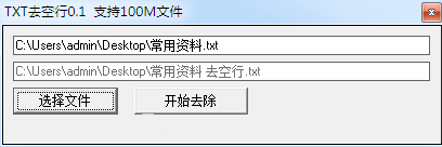 txt文本去空行是一个小巧易用的文本去空行工具,可以快速去除txt文本的空行,处理速度非常快,并支持100M的txt文件!