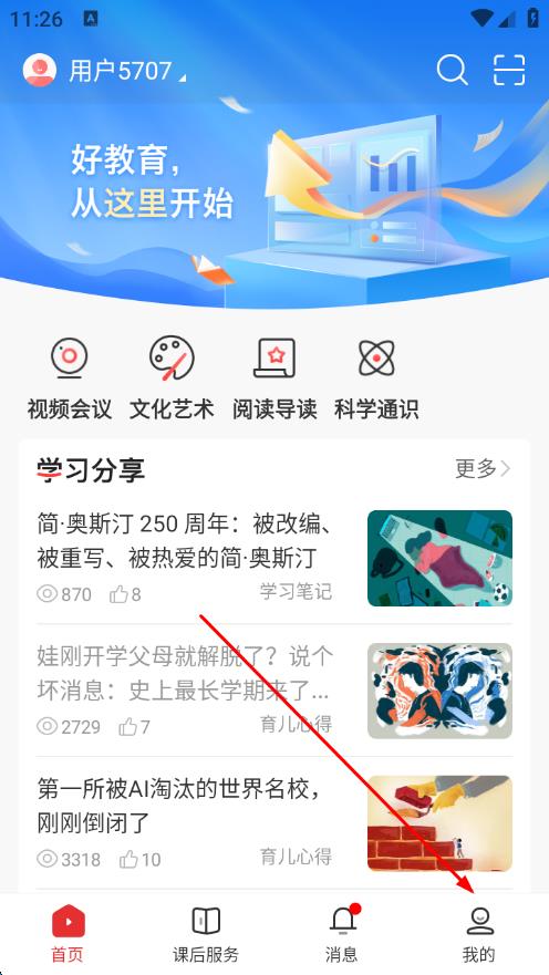 1、打开课后网App,进入首页,点击底部导航栏中的我的选项。