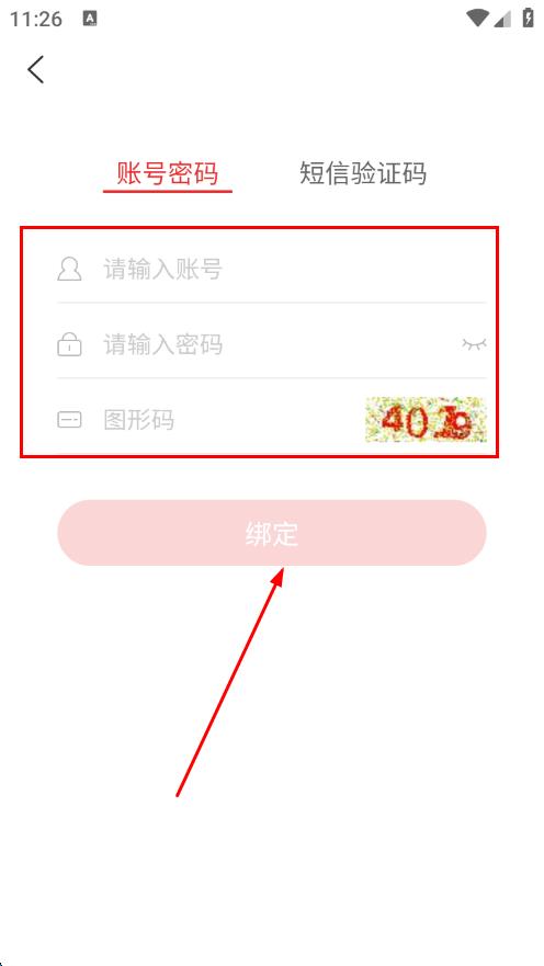 4、输入需要切换的账号、密码以及图形码,点击绑定,即可完成账号切换。