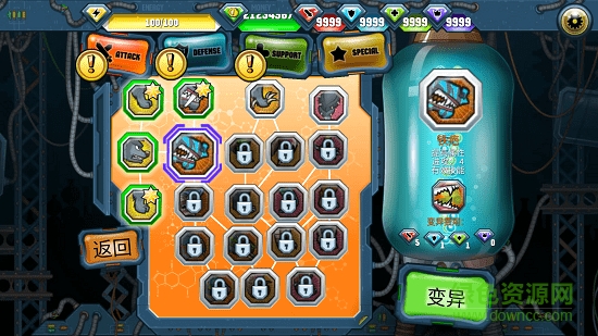 在游戏的实验室里头,能够给它加入不同的强化基因进行改造,增强它各方面的能力,包括攻击力、生命值、防御力等等。