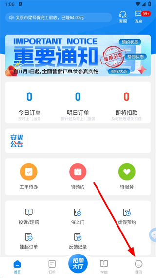1、在安帮客首页,点击右下角我的进入个人页面。