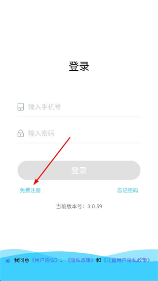 1、打开同步课堂学生,在登录页面点击免费注册选项。