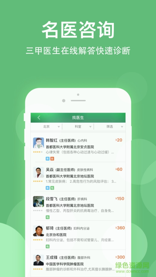 3、名医咨询:直接向健康乐上10万名全国公立二甲以上医院的主治级别以上的医生们咨询相关健康问题。