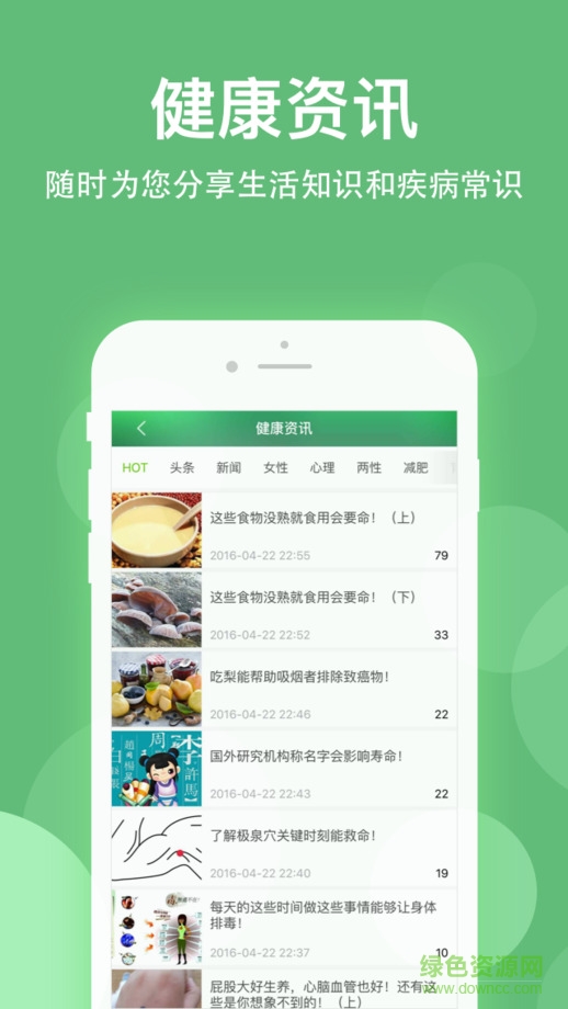 1、健康资讯:内容实时更新,随时为您分享生活知识与疾病常识。用户可以订阅来自关注医生的科普文章以及健康乐专家撰写的健康资讯,帮助用户掌握更多疾病预防及健康管理知识。