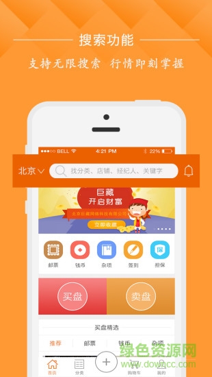 巨藏客户端是一款由巨藏为收藏品爱好者们的打造的收藏品商城,集邮票、钱币、字画、珠宝、瓷器、工艺品、文玩、杂项等为一体,全方位为广大收藏品爱好者们服务,喜欢就来绿色资源网下载体验吧!