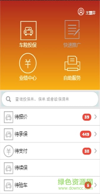 保险业务人员可以通过该app进行快速的报价,出单操作。随时查看自己的任务情况,以及快速的了解到自己最近时间段内的业绩详情。