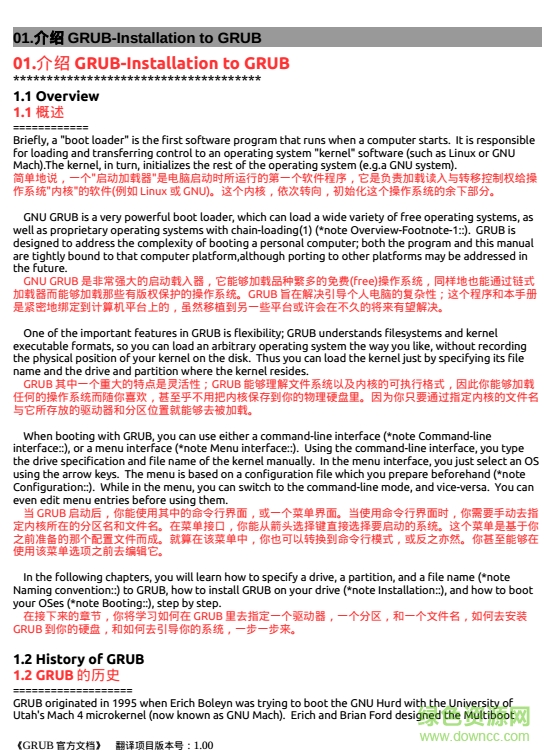 GRUB官方文档翻译pdf就是对GRUB官方文档进行翻译的PDF文件,对一些需要使用到这些的用户们来说非常实用,文件已附上,小编就不多述了,快来亲自下载体验吧!