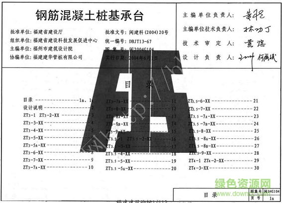 闽2004g104图集简称闽04g104图集,是福建地区建造钢筋混凝土桩基承台的参照图集,由福州市建造设计院编制。绿色资源网带来的为pdf电子版,共112页,有需要的朋友,快来下载吧!