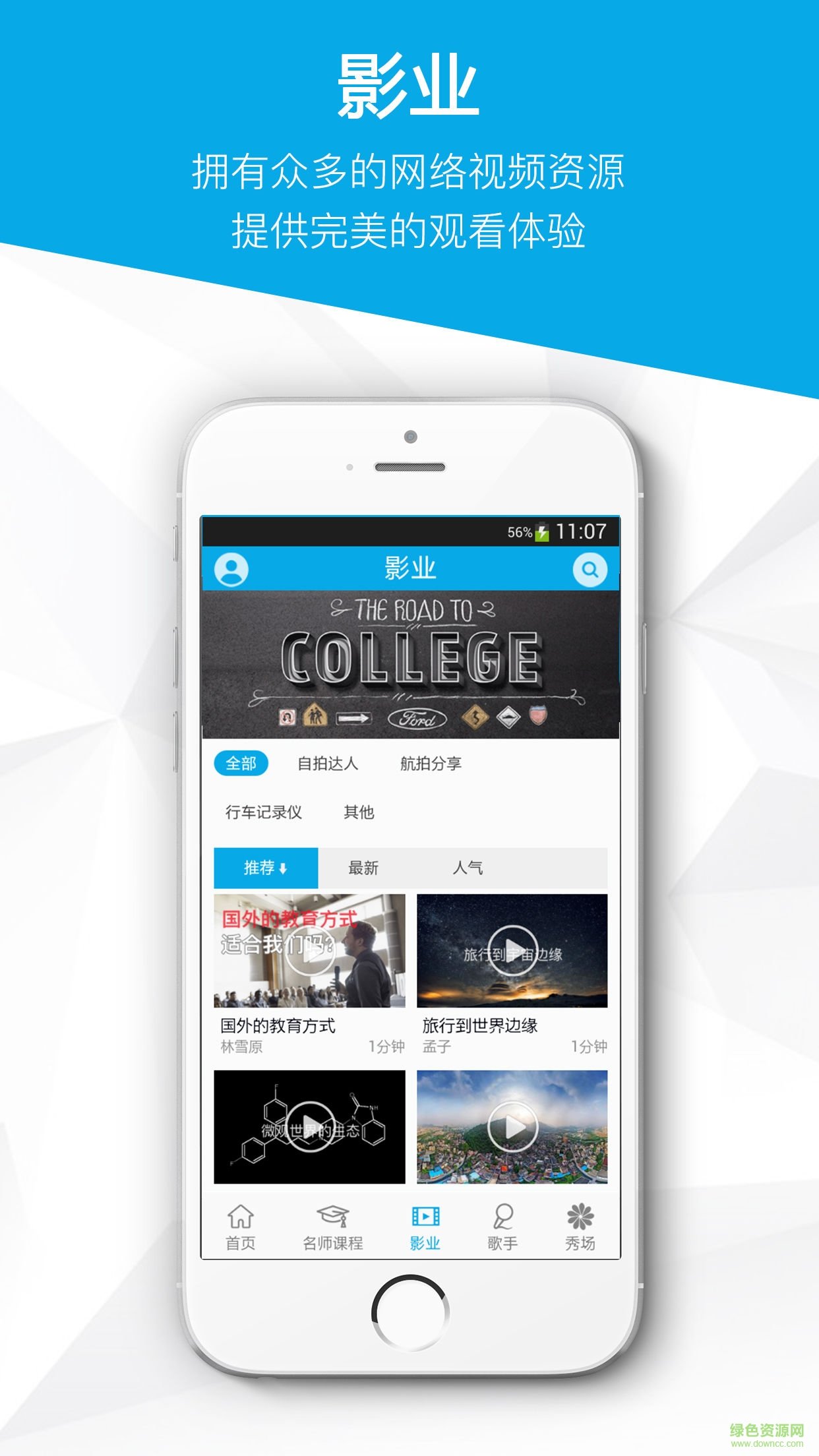 2.名师课程,名师荟萃,各行各业的精品课程,即点即学。