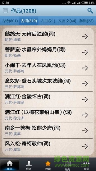 3.囊括了从中国先秦到近代期间的近十万首诗、词、文言文,按主题/朝代/书名对诗进行细致的分类