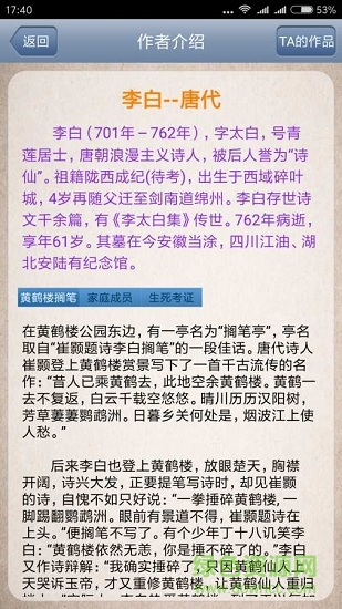 2.诗文包含了完善的译文、鉴赏、创作背景、作者等内容,并允许诗友们点赞/提交评论抒发自己的见解