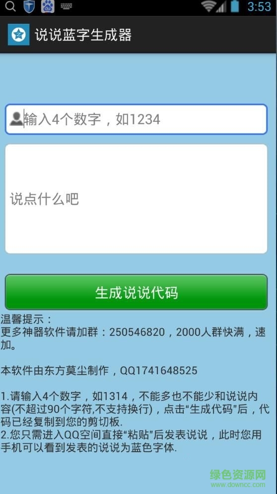 1、是一款可以将QQ空间手机端的说说和评论的内容变成蓝色字体的软件;