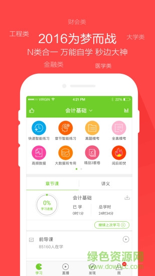 万题库直播课堂手机客户端是一款由万题库为用户打造的万题库直播app,在线即可观看名师视频解析,对你没看错!就是试题的“视频解析」哦!看不懂答案和文字解析完全没关系,首都北京的「大牛名师」讲到你懂!即使你是0基础,我们也不愿让你感受到一丝学习的痛苦与压力,力图让你做对每一道题,顺利通过考试简直不在话下!喜欢就来绿色资源网下载体验吧!