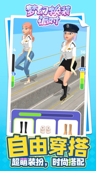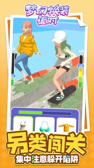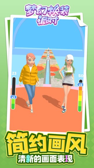 梦幻换装派对游戏手机版将换装与跑酷进行了结合,一改往日换装玩法,玩家需要在跑酷的途中收集各种服装并换上,但是途中会有很多障碍和陷阱,在享受漂亮衣服的同时要注意躲避各种坑,欢迎感兴趣的朋友下载体验!