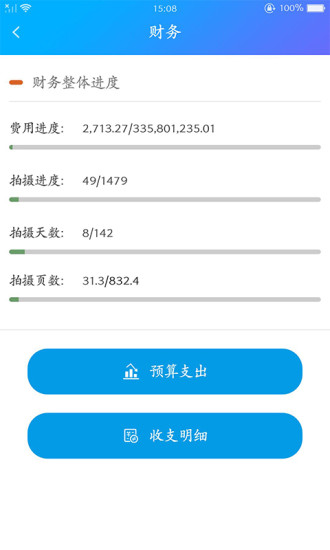 5.剧组财务---预算支出和收支明细各类数据查询方便快捷,及时查询。