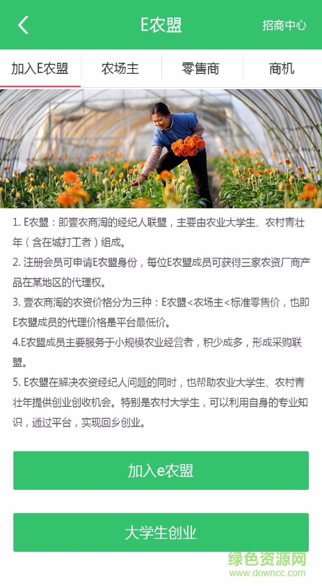 壹农商淘app是一款便捷的农产品购物手机软件,用户可以在这里查看最新的农情简报,可以查看农资产品,包括农机配件等用品,同时你也可以加入e农盟,代理农产品,喜爱的朋友赶快到绿色资源网下载使用吧!