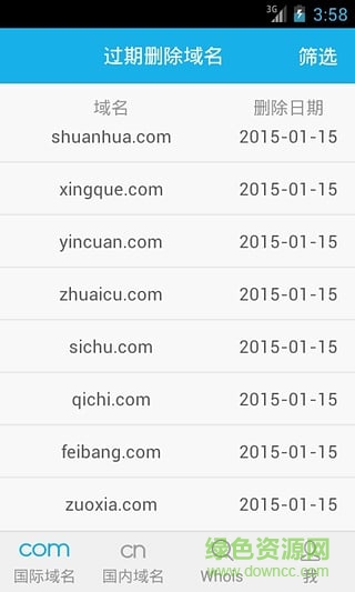 过期删除域名app是一款专为站找打造的域名查询应用,通过该应用可以查询域名信息,抢注域名等,非常的方便,有需要的朋友赶紧来绿色资源网下载吧