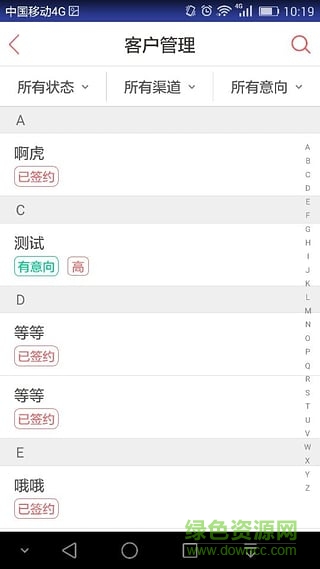 客邦app是一款专门为营销或销售人员开发的个人版客户关系管理工具,通过该软件能够快捷的管理客户、增加客户量,跟进客户销售过程,提供了到访记录查询服务,还可以云存储客户信息,能够快速提升客户转化率,是销售人员的好帮手,需要的用户快来绿色资源网下载吧!