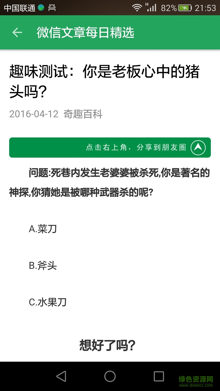 微信文章每日精选为你精选每日微信热门文章,供你在短时间内查看最近所有微信精彩内容,让你不会再朋友中out,再也不用去找段子了,每天分享最新精彩文章到朋友圈,让你在朋友圈中迅速火起来,成为朋友圈达人