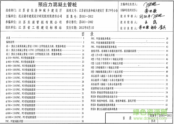 苏g03 2012图集是江苏地区建造预应力混凝土管桩的参照标准图集,由连云港市建筑设计研究院编制。本图集介绍了管桩的种类、用料、构造要求等内容,供施工、设计人员参考。快来绿色资源网下载吧!