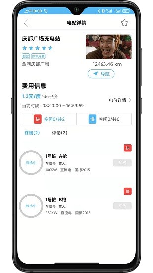 2、在线查询城市的充电桩,找到附近的充电桩;