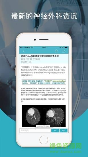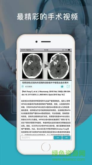 神外资讯app是一款提供神经外科资讯交流的平台,这里每日都会推送最新的神经外科资讯,拥有最精彩的手机视频及直播神外学术会议,可随时在线会看会议及培训视频,还可以和同行学习分享神外工作经验,需要的用户快来绿色资源网下载吧!