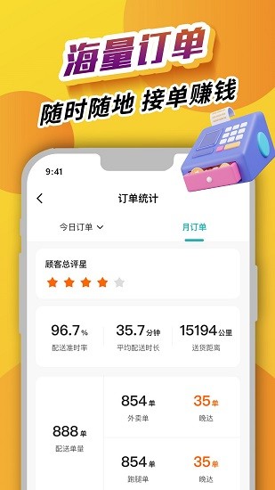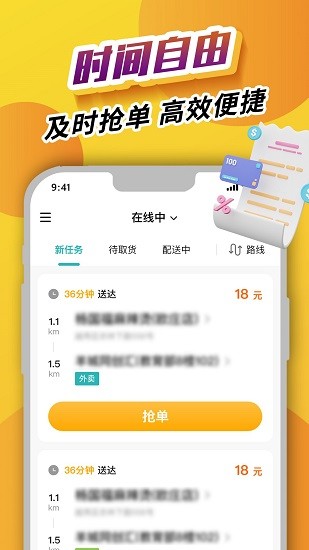 外卖猿配送是一款专为配送人员打造的配送app,功能强大,集抢单、取货、配送、配送记录查询等功能于一体,各种信息一目了然,操作方便。