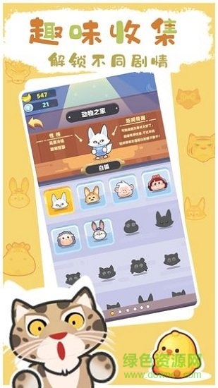 游戏中搜集各种道具,最简单的挂机玩法,让动物来帮你缓解一天的疲劳吧。