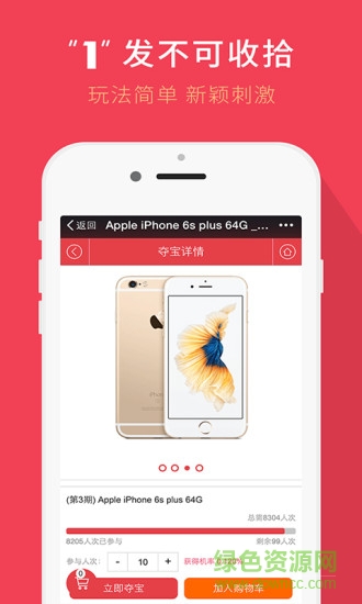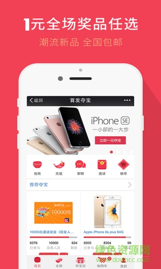 首发夺宝app是一款不错的“1元夺宝”购物软件。推送海量高端的商品,用户可以在线参与感兴趣的商品众筹夺宝活动,就有机会享受1元购打牌的抢购体验哦!在这里,天上掉馅儿饼的事情每天都在发生!快来绿色资源网下载试试手气吧!