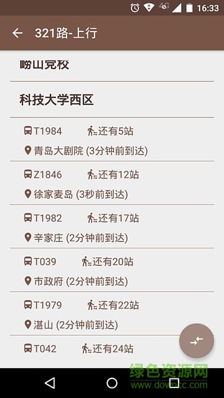 1.实时查询公交线路,比如321路,可查看该线路上某站点还有几站车