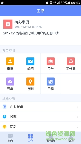 专为移动办公量身打造,推出审批、邮箱、日程、云盘、签到、公告、工作圈、企业新闻活动投票等多样且适用于企业办公的应用, 只为您提供更方便、快捷的工作方式完美解决日常办公和管理问题;