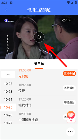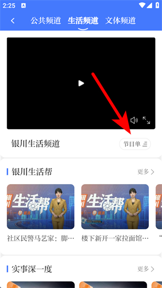 3、在银川生活频道界面,点击节目单,进入节目单详情页面。