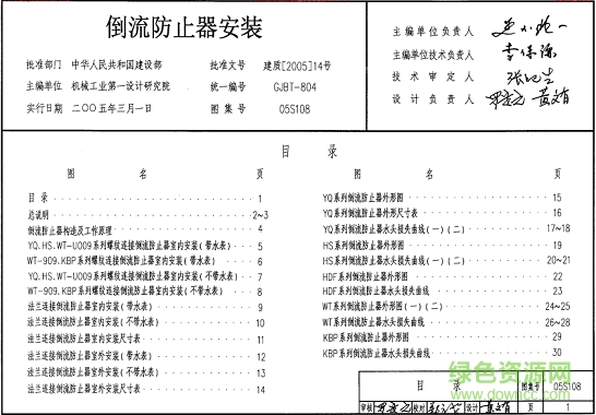 05s108图集介绍了多种型号的倒流防止器安装,如:YQ系列倒流防止器、HS系列倒流防止器、WT系列倒流防止器等,是倒流防止器安装的参照标准图集。有需要的,赶快来下载吧!
