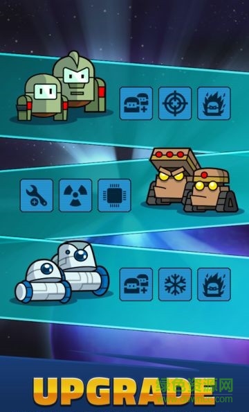 游戏中,你需要排兵布阵,召唤不同种类的机器人,合理分布它们的位置和阵营,来抵抗那些不断侵袭的敌人,守住阵地堡垒。