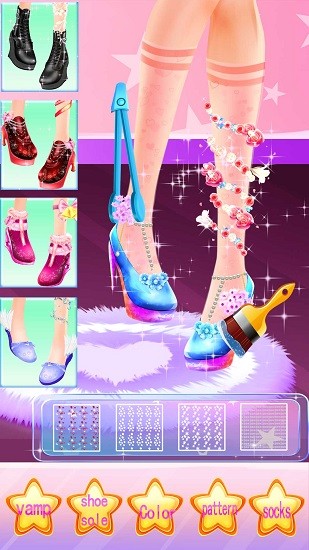 小精灵制鞋Fairy Magic Crystal Shoes游戏手机最新版中玩家可以发挥自己的设计才能制作出精美的鞋子,鞋面鞋底鞋带均可自由选择和搭配,色调也可以自由变幻,还可以决定鞋上的花纹,搭配裙子漂亮极了,欢迎大家下载体验!